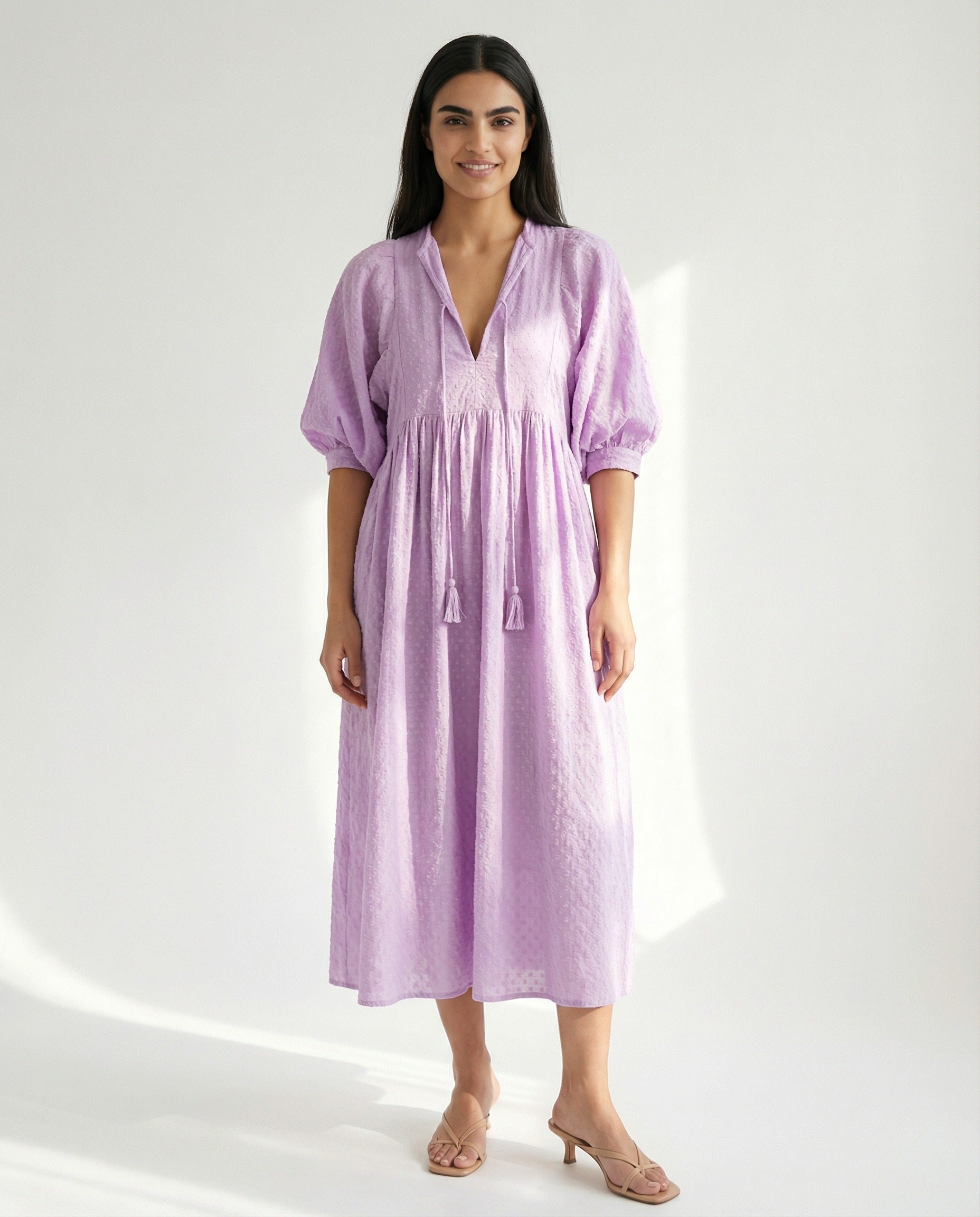 Made from 100% cotton in a delicate lilac shade, Lucia combines casual style with comfortable wear. The breathable fabric and thoughtful design make it the ideal companion – during the day as well as on warm summer evenings.