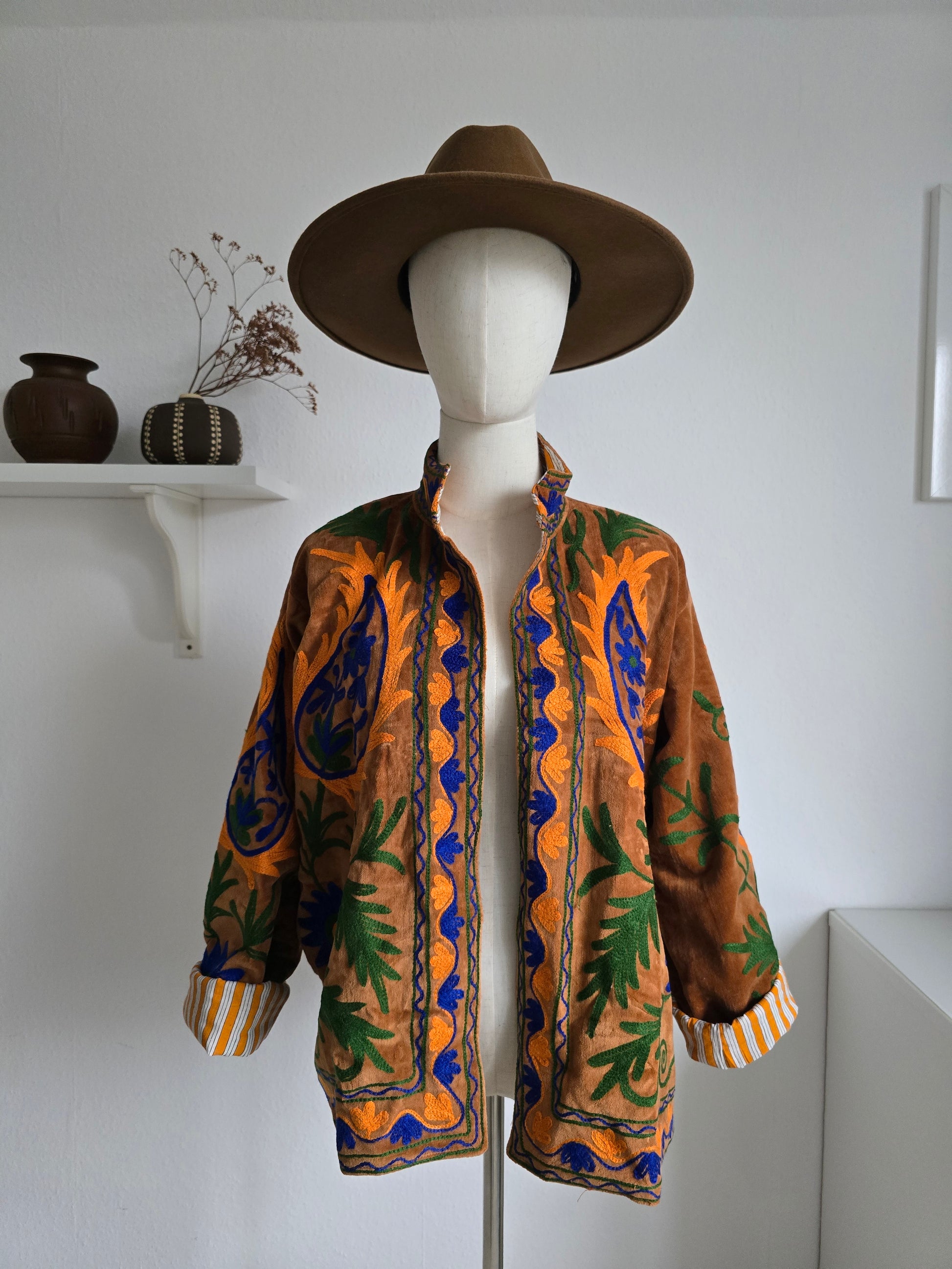 Mit ihrer entspannten, geraden Silhouette und der wunderschönen Handstickerei ist diese Jacke ein echtes Statement-Piece. Perfekt zum Layern das ganze Jahr über und ideal, um jedem Outfit mühelos Stil zu verleihen.