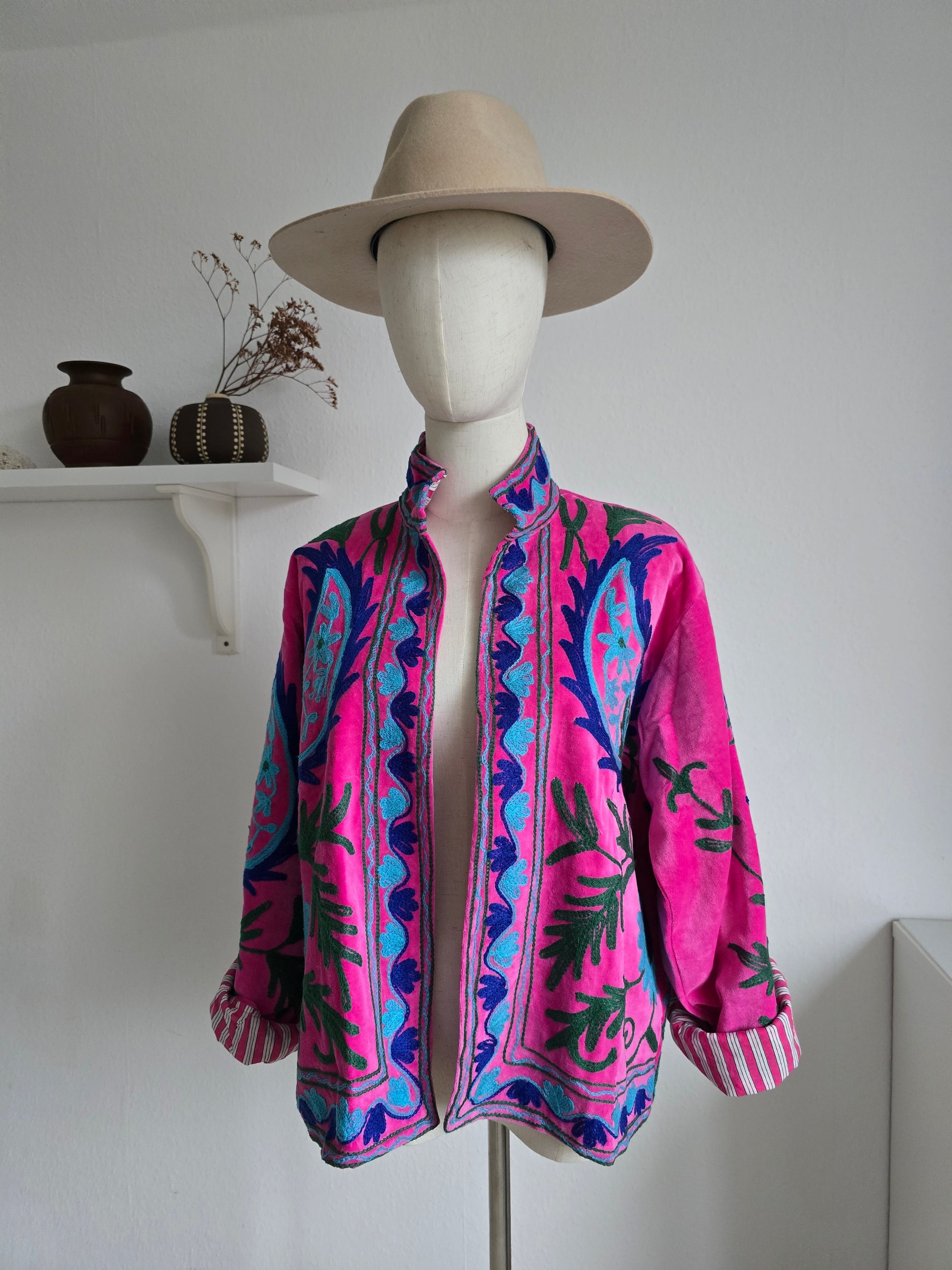Wendbare bestickte Samtjacke - Pink